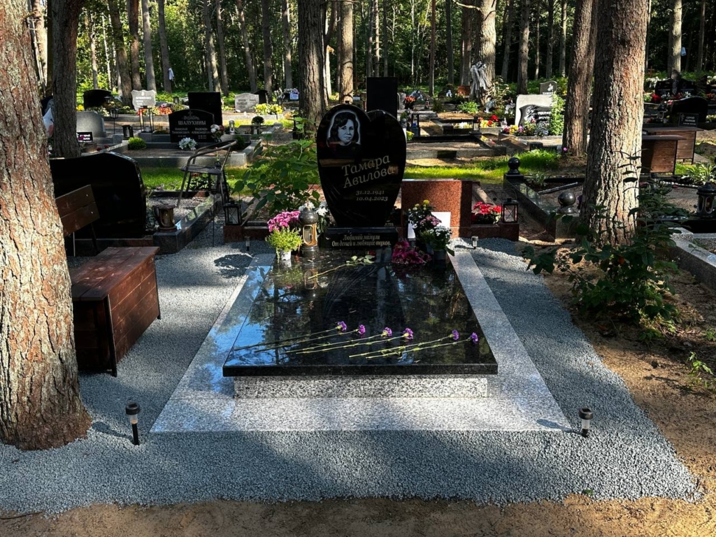 Иногда родные выбирают не только памятник, но и целый мемориальный комплекс. Это решение позволяет оформить место захоронения более масштабно и выразительно.